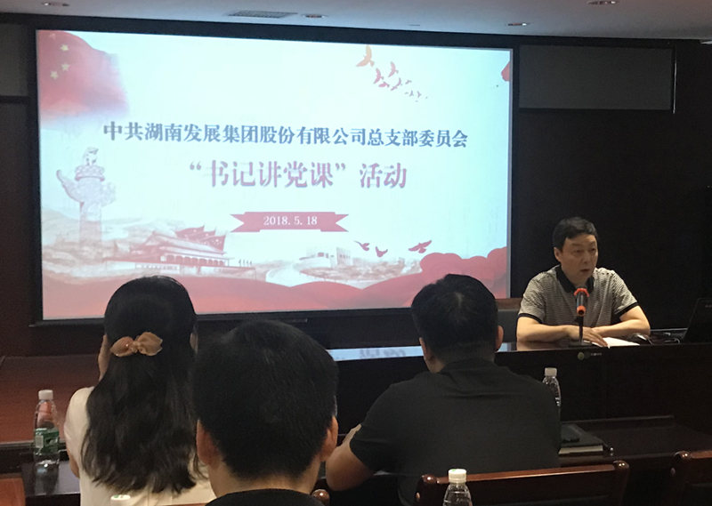 2018年5月18日下午,根據(jù)湖南省國(guó)資委系統(tǒng)“千名書(shū)記講黨課”活動(dòng)部署,公司黨總支開(kāi)展了以“學(xué)習(xí)貫徹習(xí)近平新時(shí)代中國(guó)特色社會(huì)主義思想和黨的十九大精神”為主題的支部書(shū)記集中講黨課活動(dòng)。黨總支書(shū)記、總部直屬三個(gè)支部及湖南發(fā)展僑亞黨支部書(shū)記分別為大家上了一節(jié)黨課。本次黨課活動(dòng)由公司黨總支委員、監(jiān)事會(huì)主席黃志丹主持,總部及湖南發(fā)展僑亞30余名黨員參加了學(xué)習(xí)。