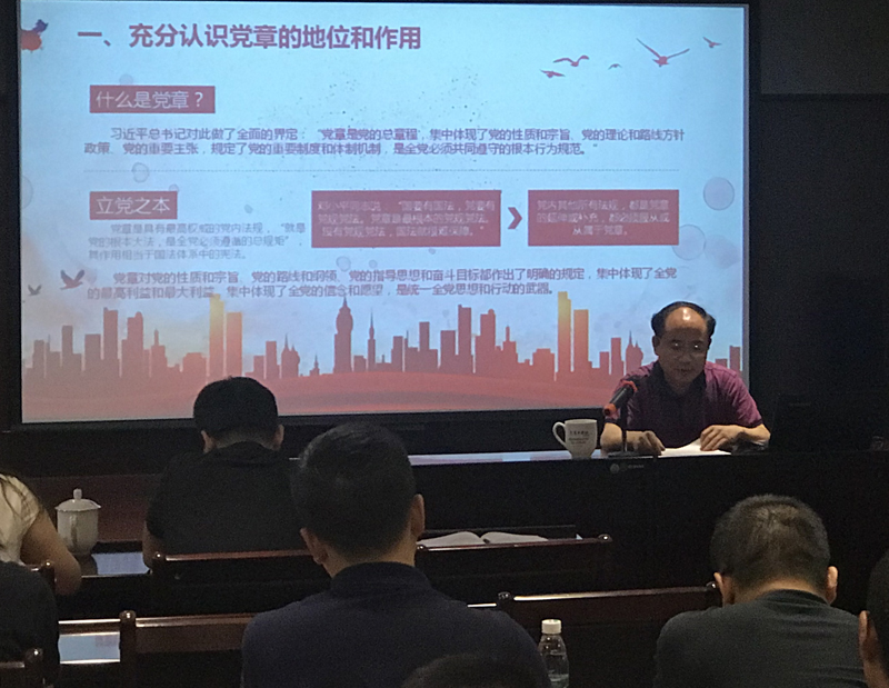 黨總支書(shū)記、總裁劉健同志在《學(xué)習(xí)尊崇黨章,爭(zhēng)做合格黨員》的黨課中,從黨章的地位、作用、歷程等方面向黨員全面解讀了中國(guó)共產(chǎn)黨章程,從黨章規(guī)定的黨員義務(wù)、習(xí)總書(shū)記系列重要論述及“四講四有”等角度闡述了合格黨員的標(biāo)準(zhǔn)。他希望公司黨員自覺(jué)以黨章、習(xí)總書(shū)記講話精神和“四講四有”為標(biāo)尺,隨時(shí)糾正個(gè)人的思想和行為,保持思想品德的純潔,保持工作作風(fēng)的優(yōu)良,保持工作績(jī)效的先進(jìn),保持個(gè)人行為的廉潔,主動(dòng)融入公司的發(fā)展大計(jì),盡職盡責(zé)做好本職工作。